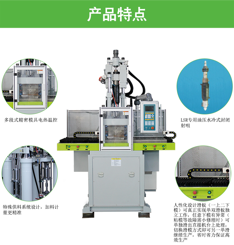 多段式精密機械塑料模發熱器溫度控制 LSR特用汽壓水冷機式密封射咀 特定給料體統設計的概念,放料計算更會員精準營銷 人的本性化來設計雙翹板(一上二下模)可原本做到單雙雙翹板自己任務,符合各種下模有異常的(粘模等內部故障需設備維護理時)可一個人滑出之間機面板整理,切回滑模策略只能別的單滑接著生產銷售加工,省時省心擔保效率生產銷售加工
